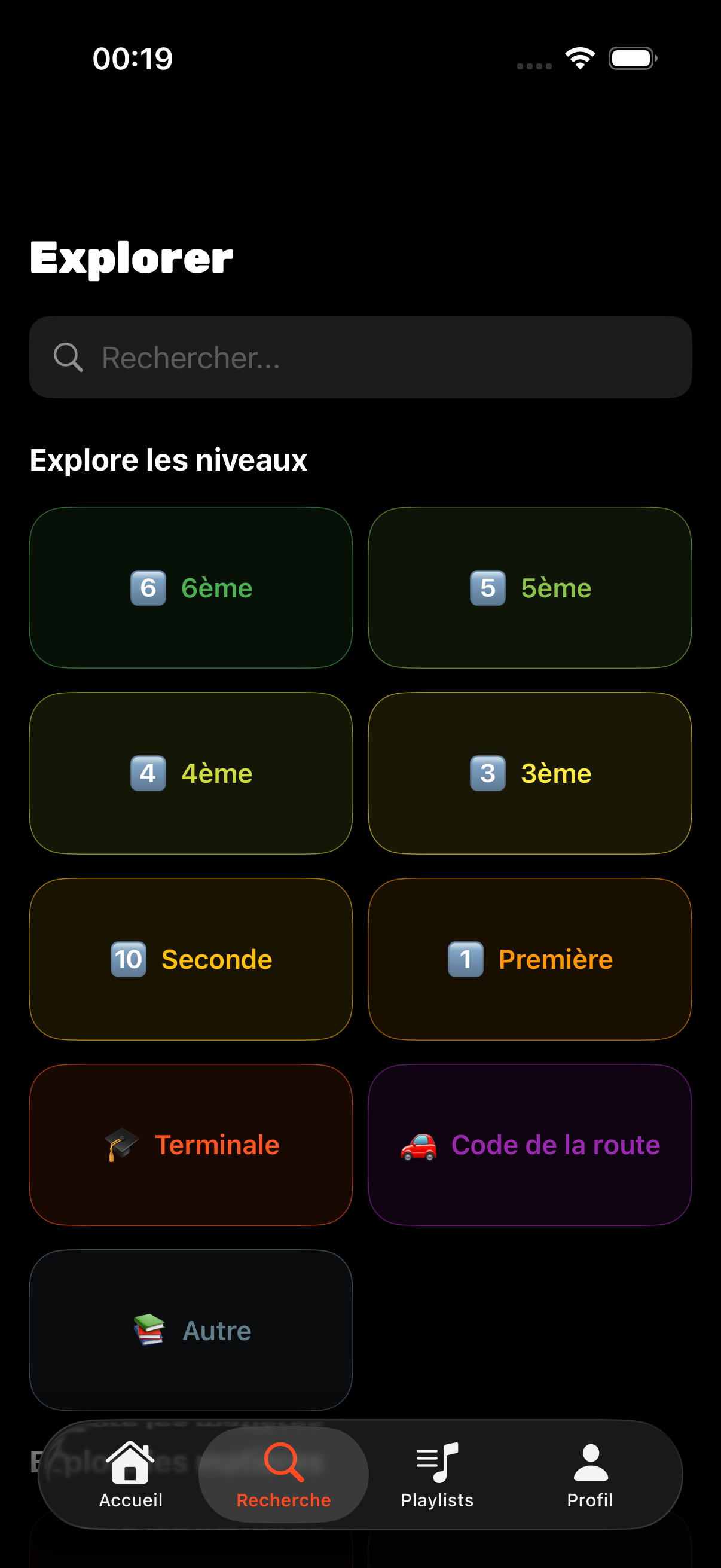 Tous les niveaux sont couverts.